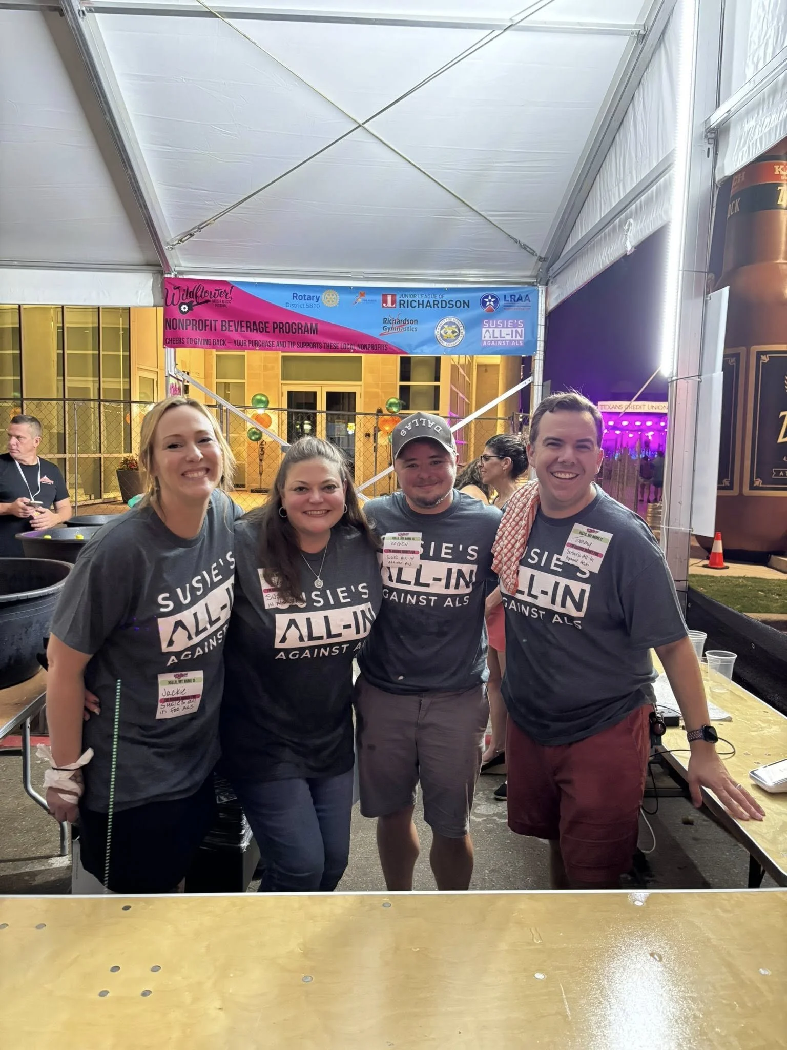 Susie's All-In Against ALS is a 501(c)(3) that aims to support research, raise awareness, and provide assistance to individuals and families affected by Amyotrophic Lateral Sclerosis (ALS).